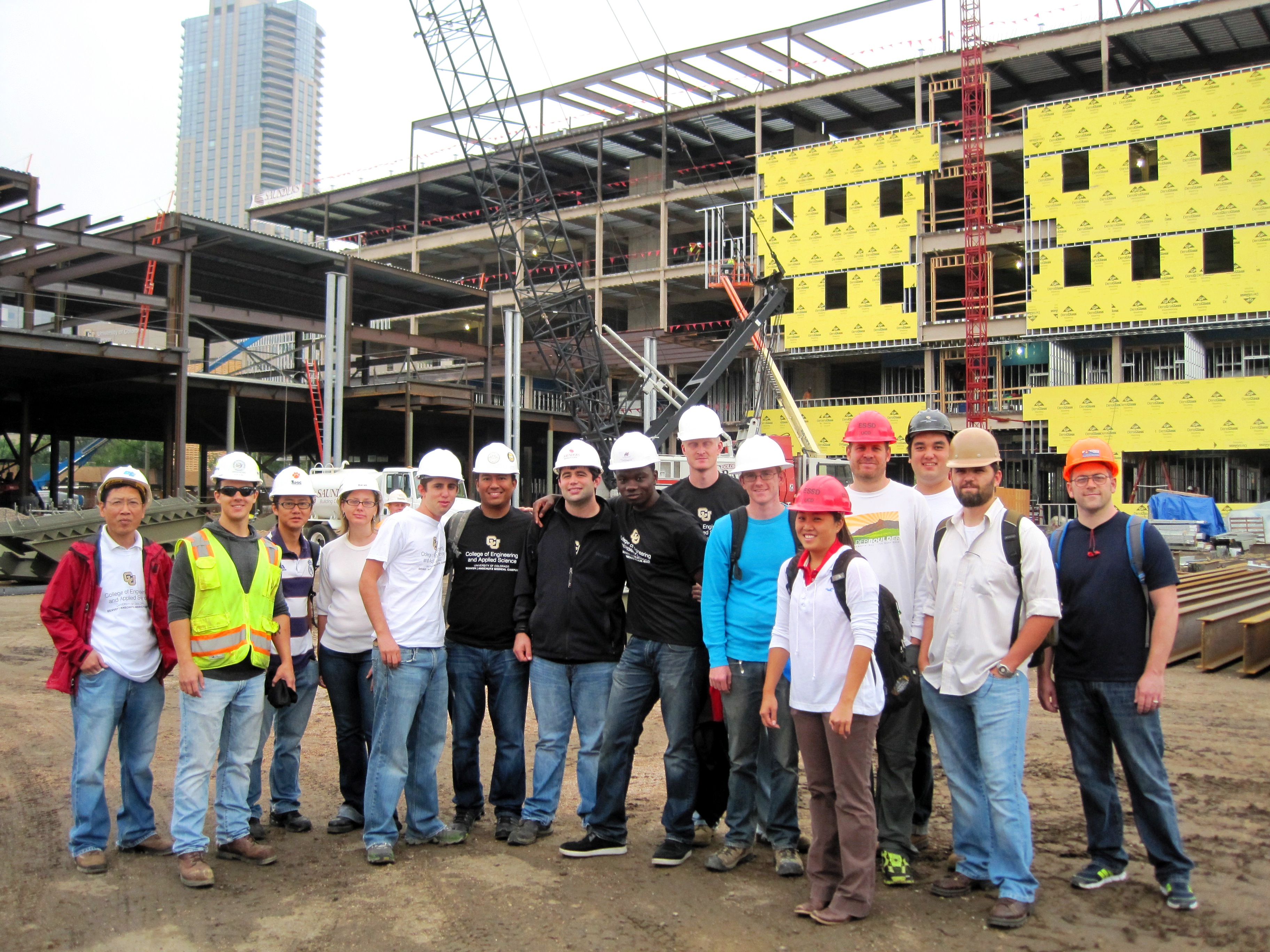 In early September, two groups of CU Denver Civil Engineering students from the American Society of Civil Engineers (ASCE) Student Chapter and the Structural Steel Design Course took a site tour of the New Academic Building 1 Jobsite. In fall 2014, Academic Building 1 is set to be the first CU Denver exclusively owned and operated building on the Auraria Campus.
