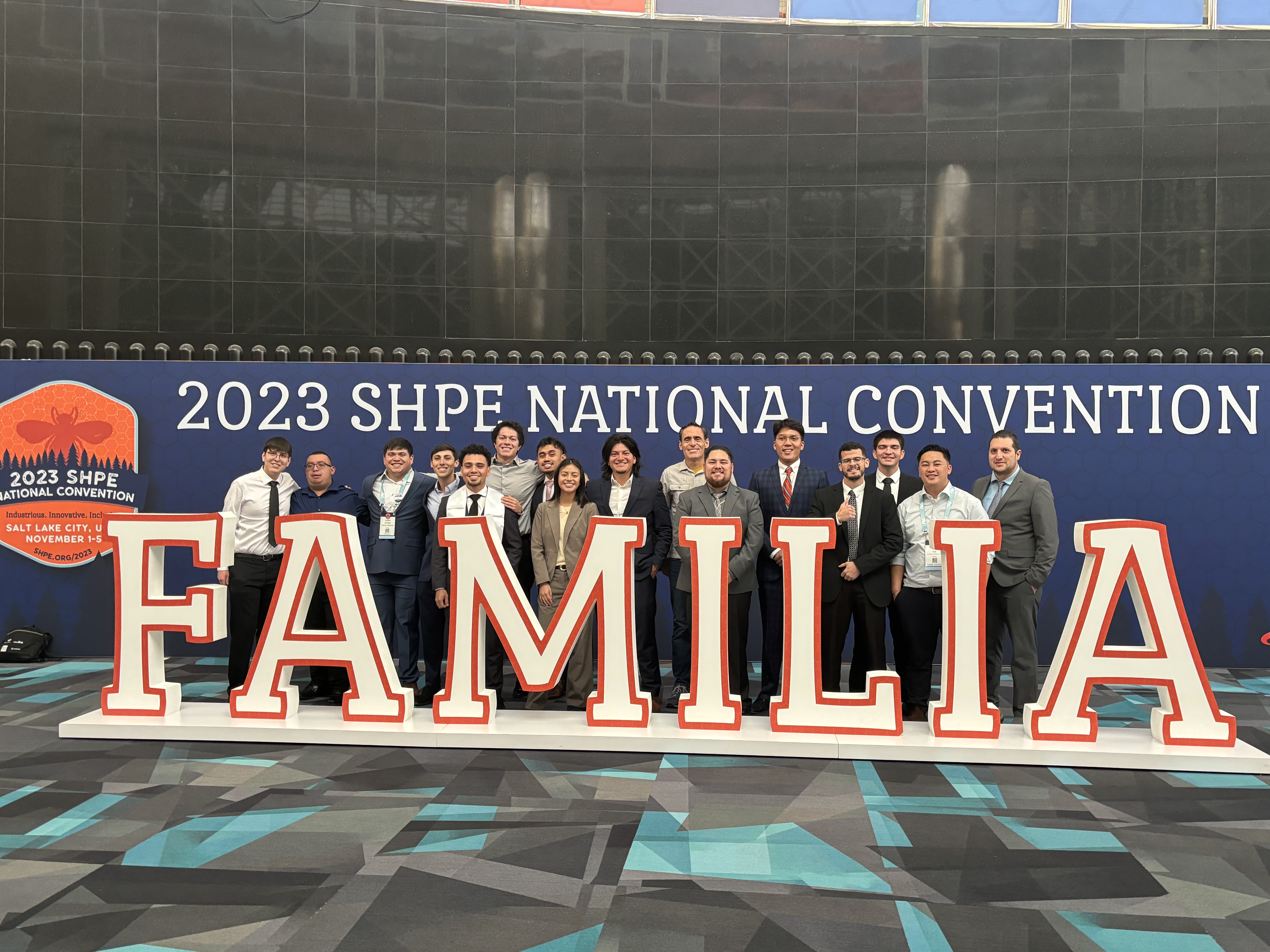 Fifteen student members and their faculty advisor, Fernando Mancilla- David, attended the SHPE 2023 National Convention, which took place from November 1 to 5, 2023, in Salt Lake City, Utah. The convention was a great success, featuring more than 12,000 engineering student attendees from all over the United States. The convention brought together students and many sponsors from industry (e.g., Apple, Google, SpaceX), government (e.g., CIA, NSF, DOE), and nonprofits (e.g., The Electric Power Research Institute, The Linux Foundation, Space Dynamics Laboratory).
